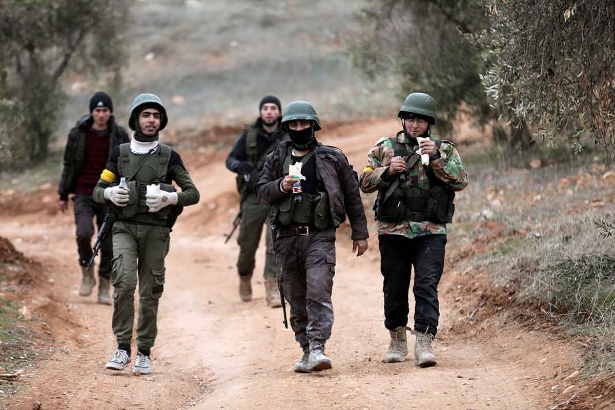Turkish-backed Free Syrian Army fighters are seen near Afrin, Syria. Churches in Afrin are calling on the world to stop the slaughter of civilians during the Turkish military assault. (CNS photo/Khalil Ashawi, Reuters)