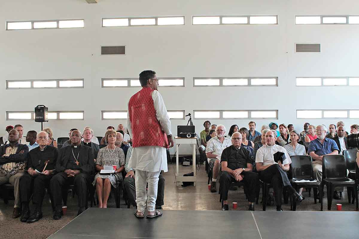 Raymond Perrier is seen addressing last year’s AGM of the Denis Hurley Centre in Durban. (Photo: Sithembiso Shoba)