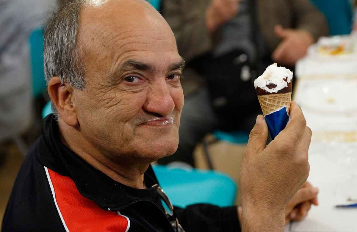 Cones raised in the air, the crowd gathered for dinner at the Sant’Egidio Community’s soup kitchen toasted Pope Francis on his name day, the feast of St. George.