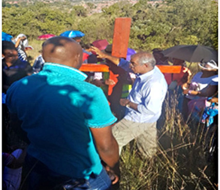 By Ezzy Seabelo – On the day before Palm Sunday, the community of St Peter’s church in Tlhabane, led by parish priest Fr Peter Ackappady, braved the boiling heat and walked for 6km from the church to the nearby mountain ridge on the road to Phokeng as part of an annual Easter pilgrimage.