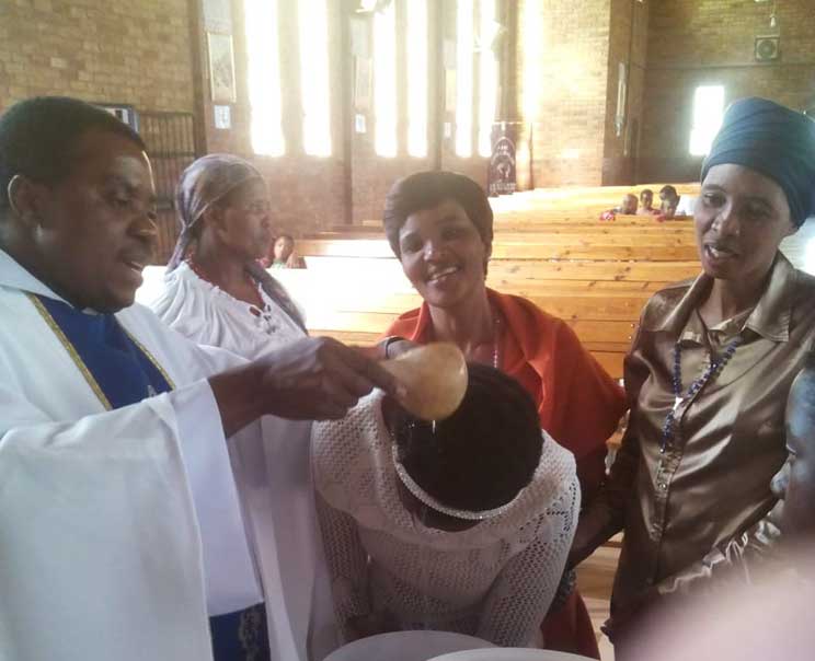 Fr Michael Mapulanga baptises a baby at St Charles Lwanga parish in Botshabelo, in Bloemfontein archdiocese.