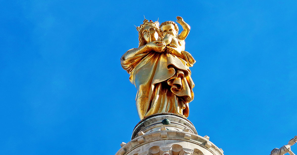 The Madonna watches over Marseilles atop the basilica of Notre Dame de Garde, the city’s highest point • France-based South African Oblate Father Bonga Majola explains the history of Marseilles’ St Mary Major cathedral, which was founded by St Eugène.