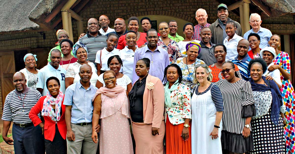 Cathedral parish pastoral council members in Tzaneen, Limpopo, attended a retreat at Ave Maria Pastoral Centre. The retreat was led by parish priest Fr Jimmy Kennedy SPS and assistant Fr William Banda SPS. Fr Andrew Shingange gave a talk on the sacrament of marriage during the retreat and Bishop Emeritus Hugh Slattery celebrated Sunday Mass. PPC members are seen with Fr Kennedy and Bishop Slattery.