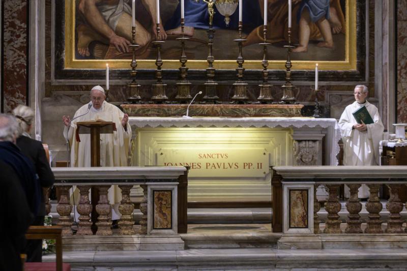 The Mass at St. John Paul’s tomb was scheduled to be the last of Pope Francis’ early morning Masses to be livestreamed online; with churches opening in Italy and elsewhere, the pope encouraged people to attend Mass in their local parish communities while respecting health norms.