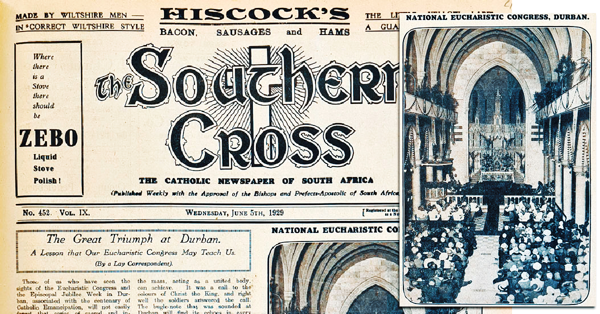 The Southern Cross describes the historic Eucharistic Congress in Durban as an “unprecedented pageant of the Royal Christ, a flaming evidence of Catholic love, honour and devotion”. Delegates to the congress arrived by ship and motor car, and many laity opened their homes to “these servants of God”. The congress climaxed on Sunday with a procession as 11 000 Catholics escorting the Holy Eucharist through the streets of Durban to the Albert Park Oval before the closing Mass was celebrated in Emmanuel cathedral.