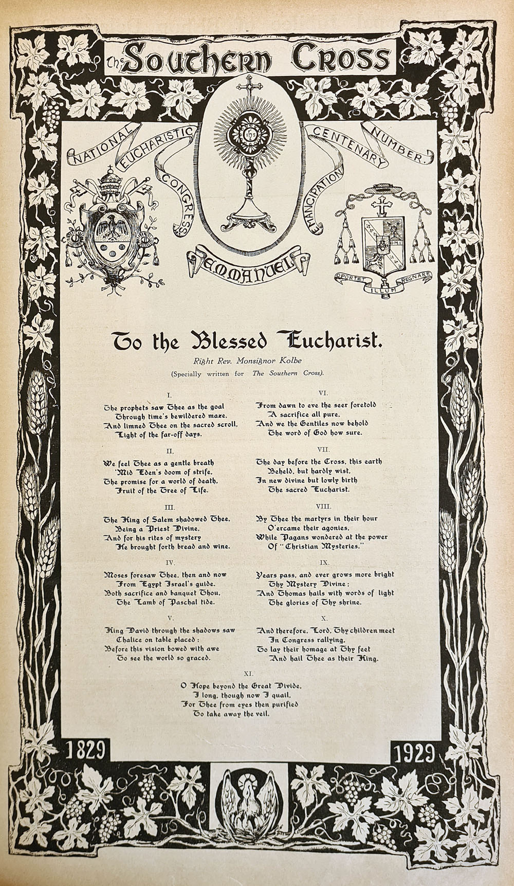 Eucharistic Prayer written especially for The Southern Cross by Msg Friedrich Carl Kolbe dated 5 June 1929