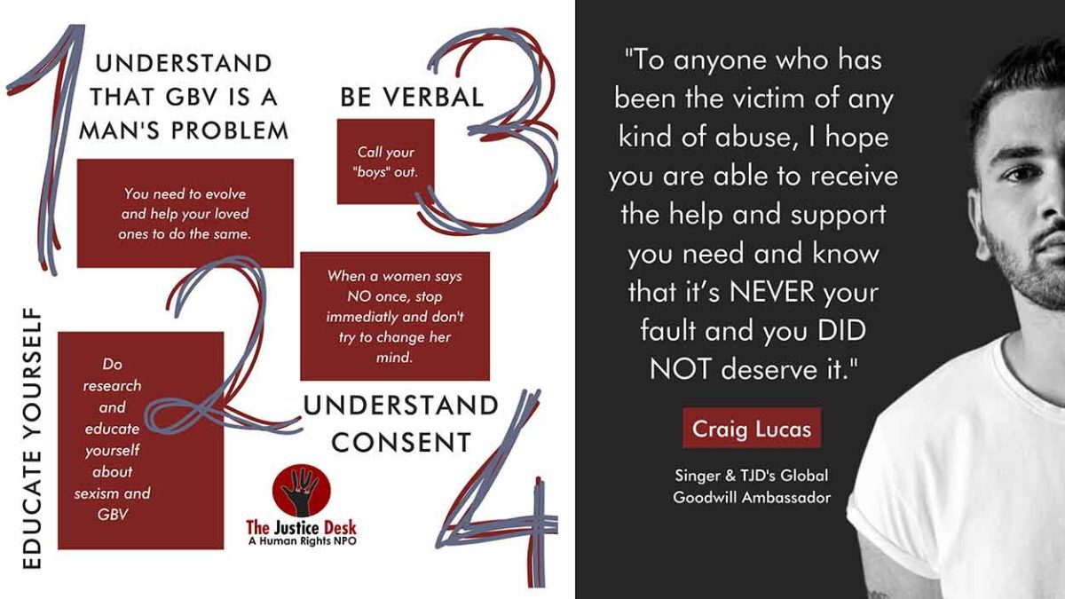 “As The Justice Desk, we believe it is both unreasonable and unacceptable to expect only the female half of the entire population of South Africa to find a solution to GBV, and therefore call on men to play their vital role in ending GBV,” said Jessica Dewhurst, Justice Desk CEO and founder.