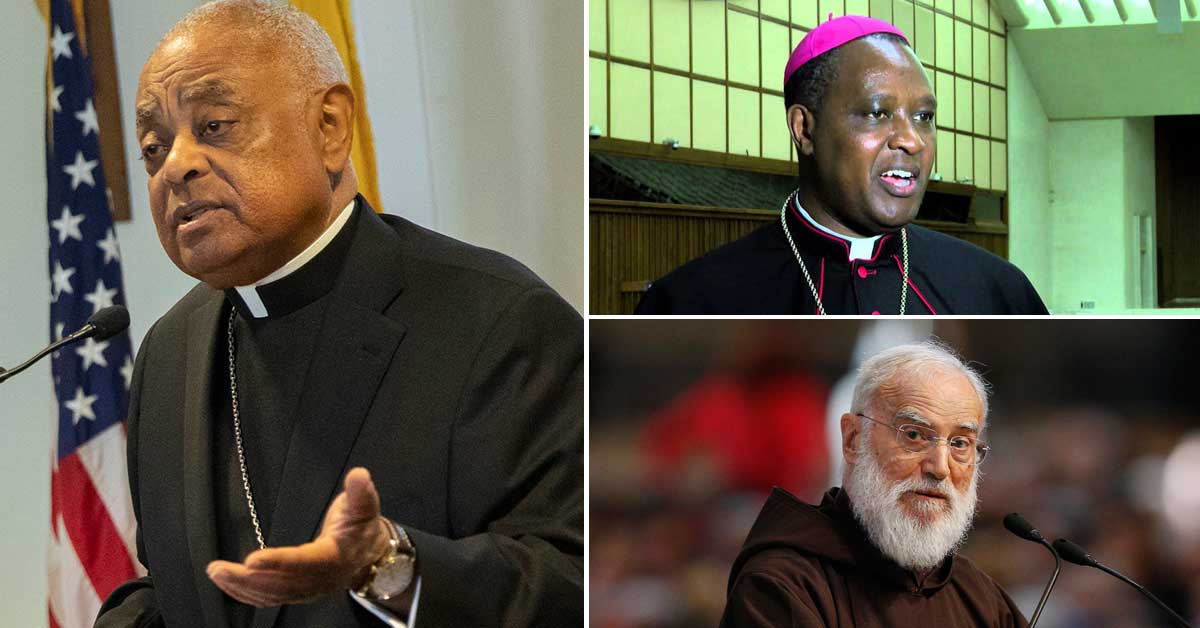 Archbishop of Washington, Wilton Gregory, Archbishop Antoine Kambanda of Kigali, Rwanda and Capuchin Father Raniero Cantalamessa. (Photos: Jaclyn Lippelmann, Catholic Standard/Paul Haring/CNS)