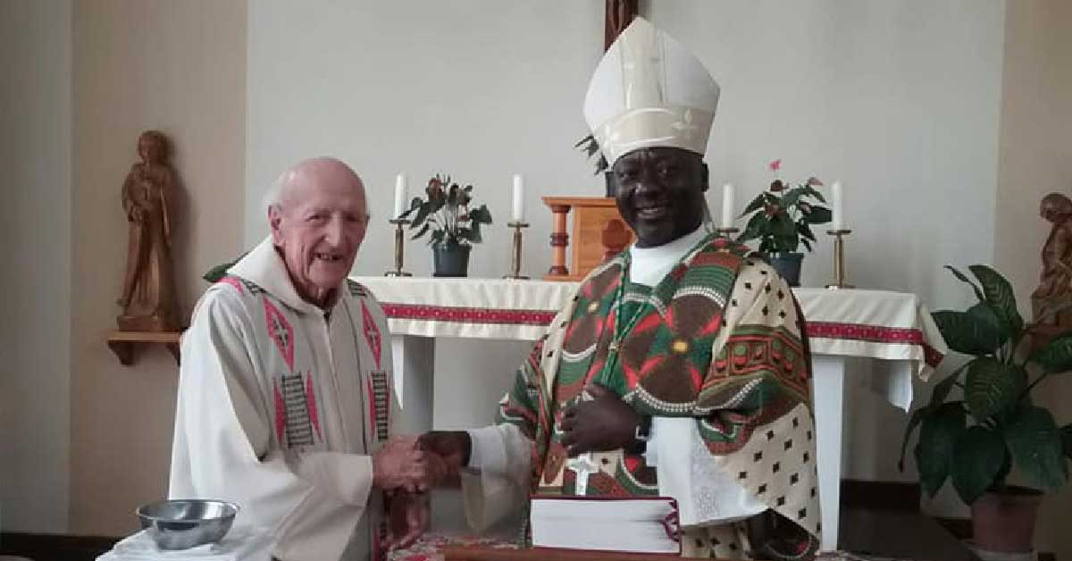 Bishop Joseph Kizito of Aliwal diocese (ordained February 2020), visited Emeritus Bishop Fritz Lobinger (Bishop of Aliwal 1987-2004) at Mariannhill. They took the opportunity to bless one another. A very touching moment indeed.