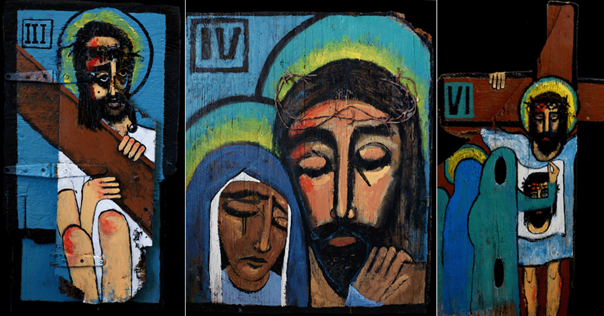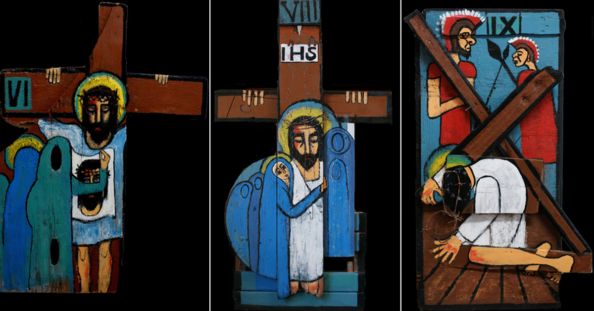 He made his stations from welded scrap metal, raw and exposed. No gentle figures here in flowing clothes but the stark, gaunt reality of the mob, depicted face-on.