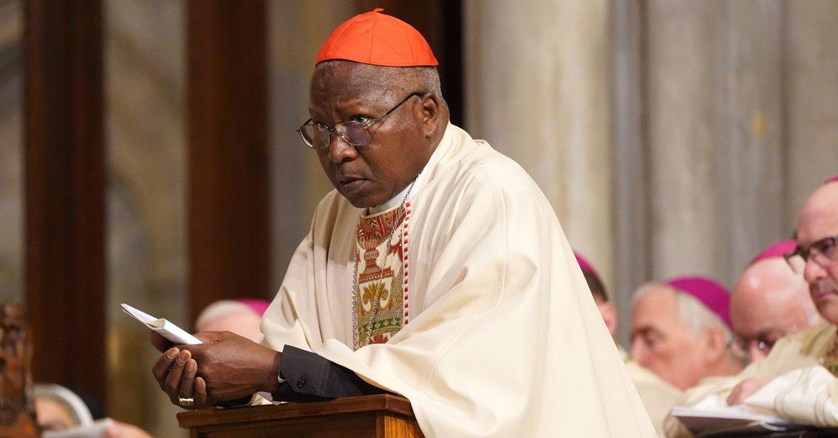 Cardinal Philippe Ouédraogo of Ouagadougou, Burkina Faso, kneels in the sanctuary at St Patrick’s Cathedral in New York City. The cardinal has denounced the imposition of “foreign ideologies” across Africa and urged its citizens to seek modernisation without succumbing to Western influences that erode family bonds. (CNS photo/Gregory A. Shemitz)