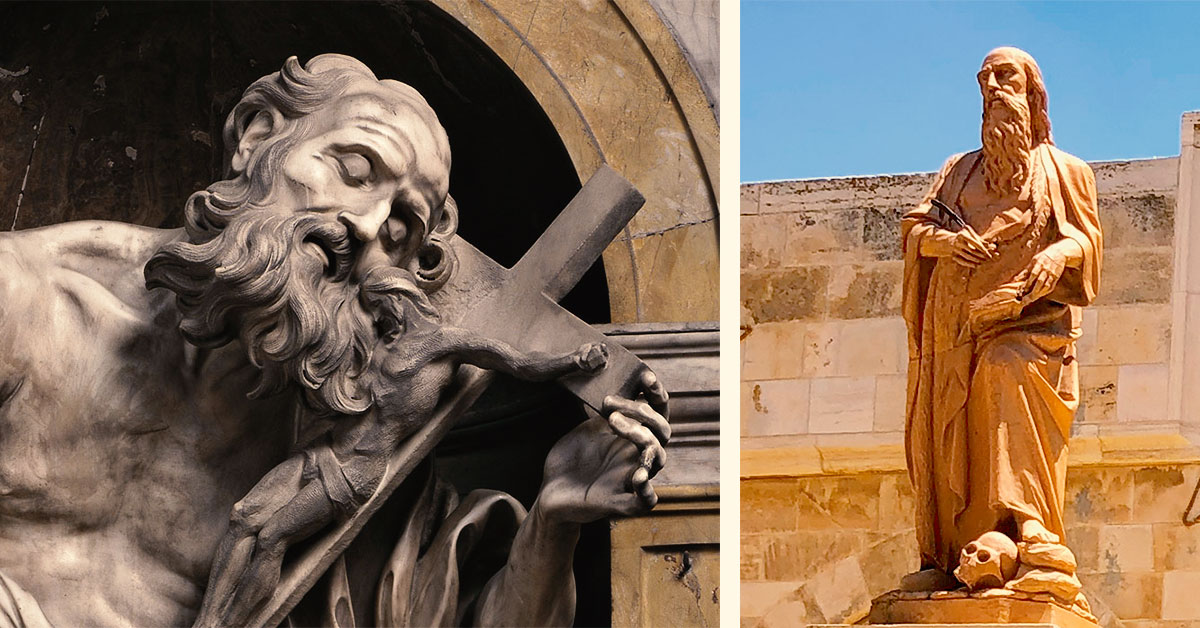 (Left) St Jerome, created by sculptor Bernini in Siena Cathedral, Tuscany, Italy. (Right)St Jerome in a monument in Bethlehem, Palestine, where he translated the Bible into Latin. This work is known as the “Vulgate”.