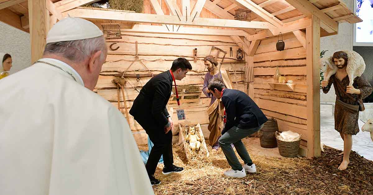 As Christmas festivities draw near, Pope Francis said the créche remains a symbol of hope that God “never tires of us” and that he chose to dwell among men and women “not as one who stands on high to dominate, but as the one who stoops low, small and poor, to serve.”