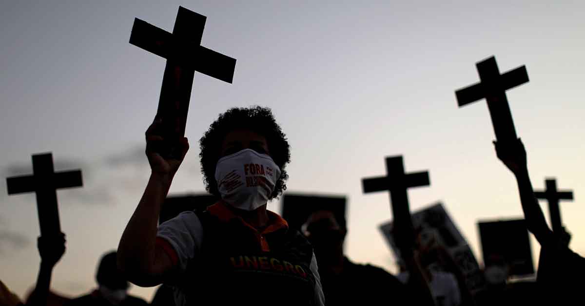 People in Brasilia, Brazil, protest racism and police violence May 13, 2021. (CNS photo/Ueslei Marcelino, Reuters)