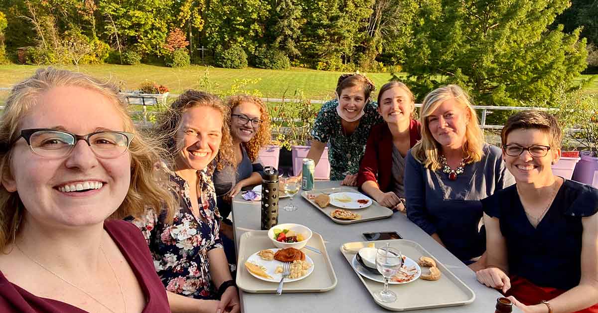 Benedictine friends in Erie, Pa., celebrate Sister Val Luckey’s perpetual profession ceremony on Oct. 9, 2021. (CNS photo/Katie Gordon, courtesy Global Sisters Report)
