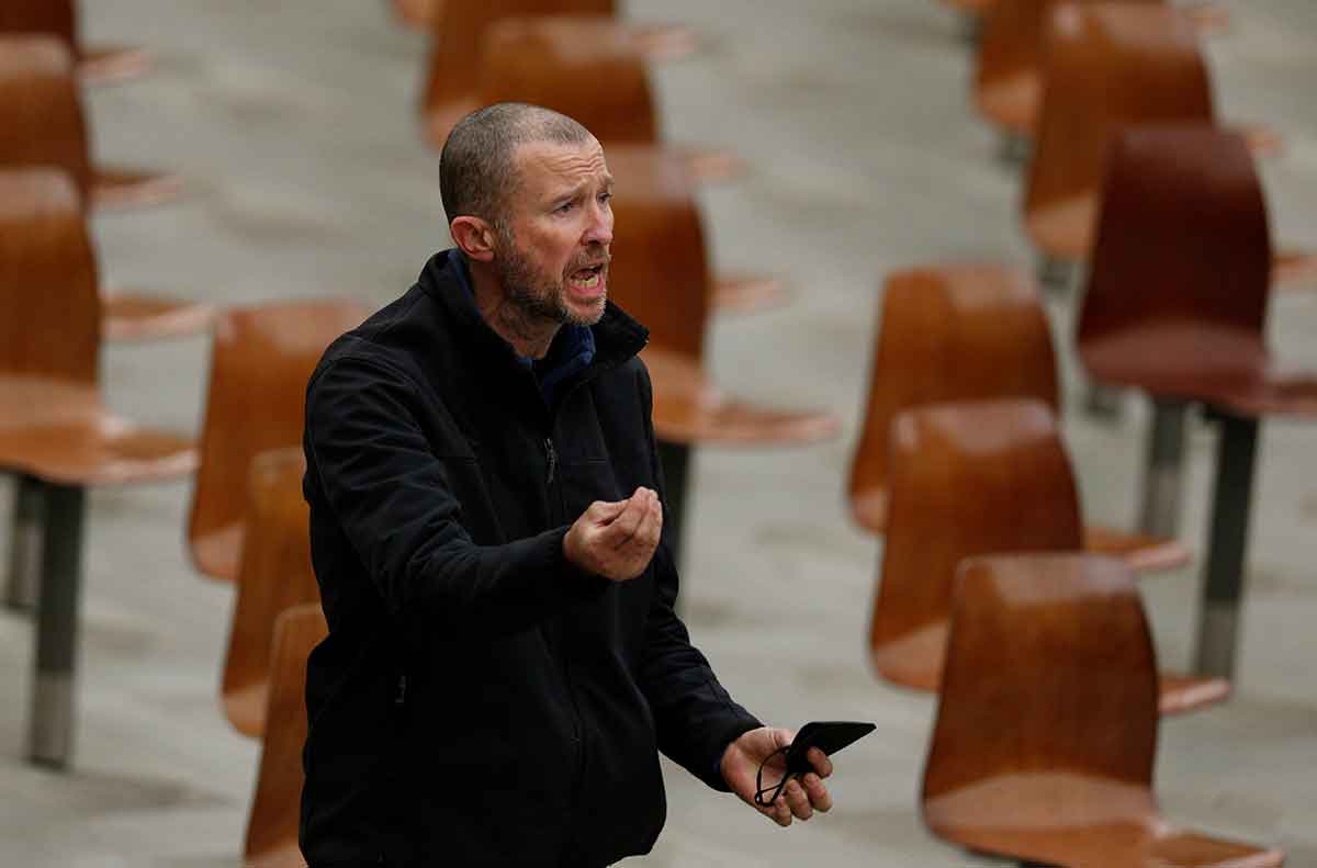But while he was reading it, a man in the back of the audience hall began shouting, including about wearing masks. Vatican police escorted him out of the building.