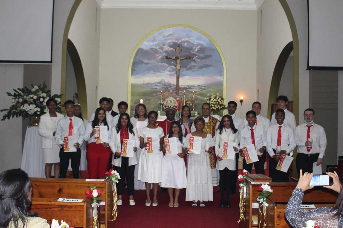 Confirmandi for 2022 at the parish with Bishop Vincent Mduduzi Zungu and parish priest Fr Varghese Kannanaickal CMI