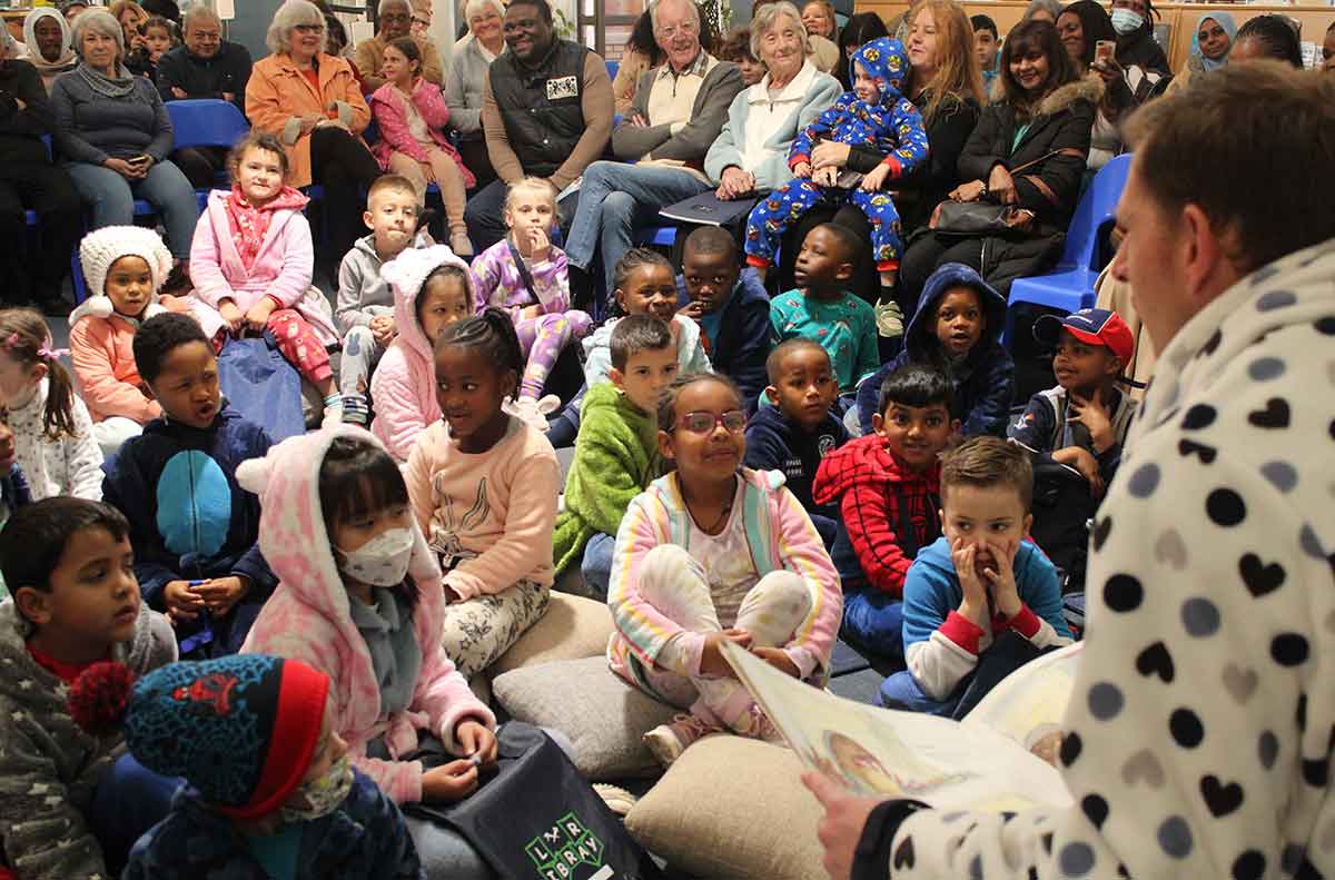 Hylton Powell (Primary School Deputy Principal) reading a story for Grade R (0) students and grandparents.