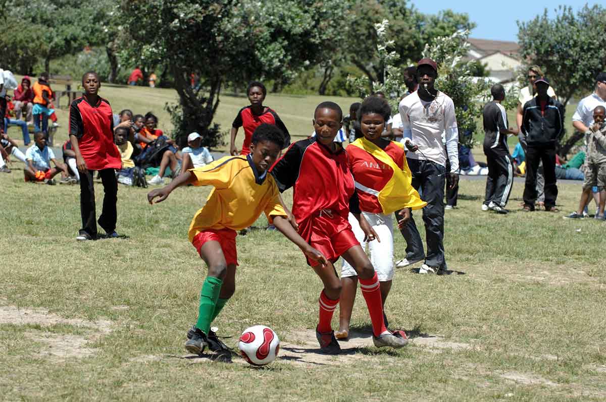 Young people are pictured in a file photo playing soccer on a field in Cape Town, South Africa. Youth unemployment in southern Africa is at 25%, with the East and Southern Africa regions home to more than 60% of adolescents ages 10-19 living with HIV. (CNS photo/Harald Oppitz, KNA)