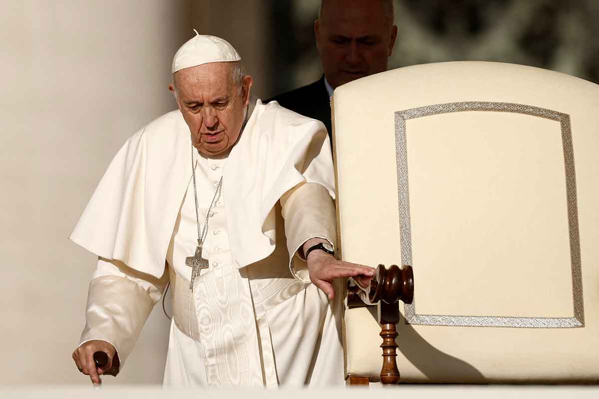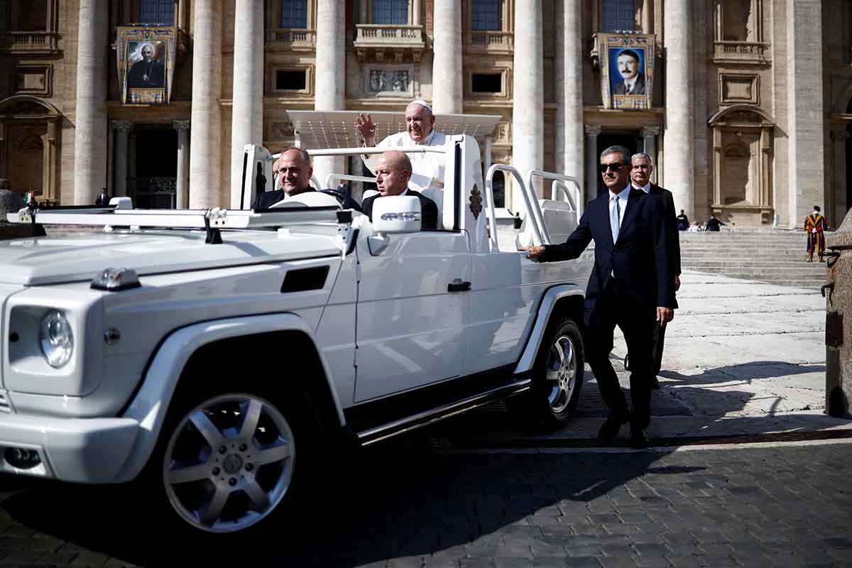 Pope Francis arrives for his general audience in St. Peter’s Square at the Vatican Oct. 12, 2022. (CNS photo/Guglielmo Mangiapane, Reuters)