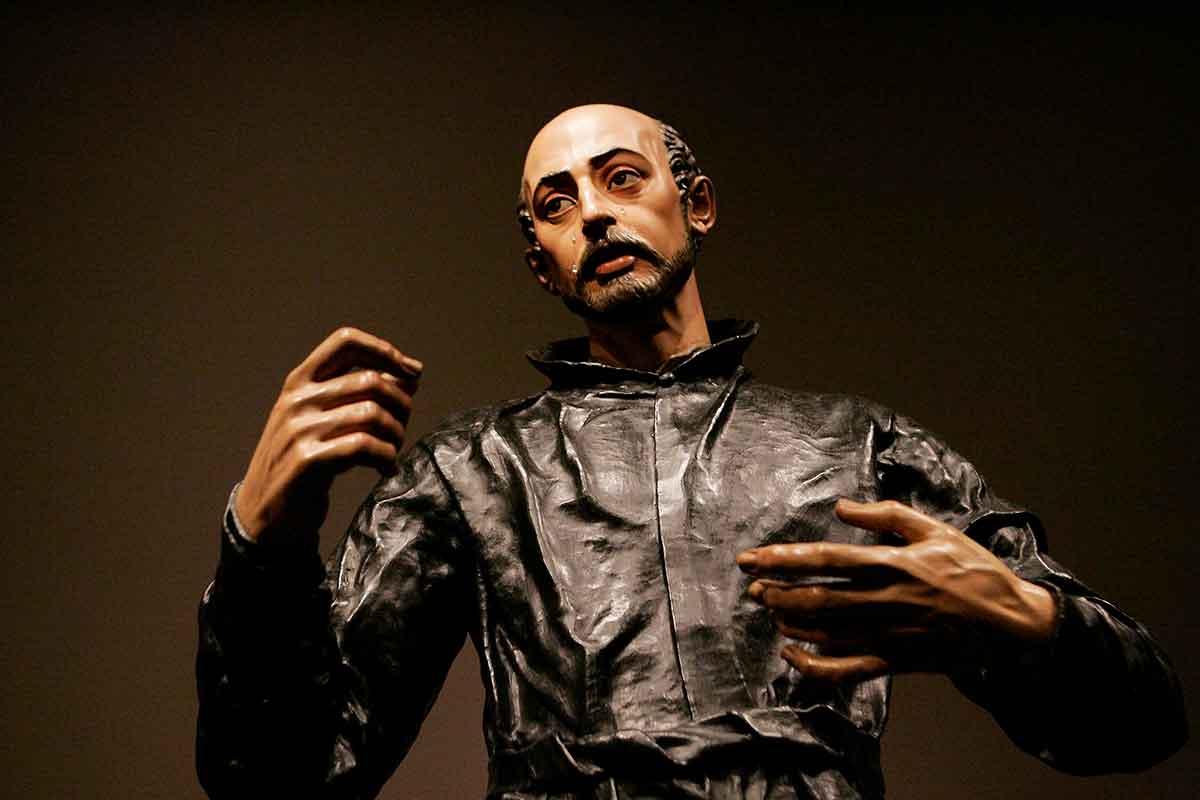 The upper portion of the sculpture “Saint Ignatius Loyola,” by Juan Martínez Montañés and Francisco Pacheco, is seen in the exhibit “The Sacred Made Real” at the National Gallery of Art in Washington Feb. 24, 2010. St. Ignatius of Loyola taught us that God is present in all things. (CNS photo/Nancy Wiechec)