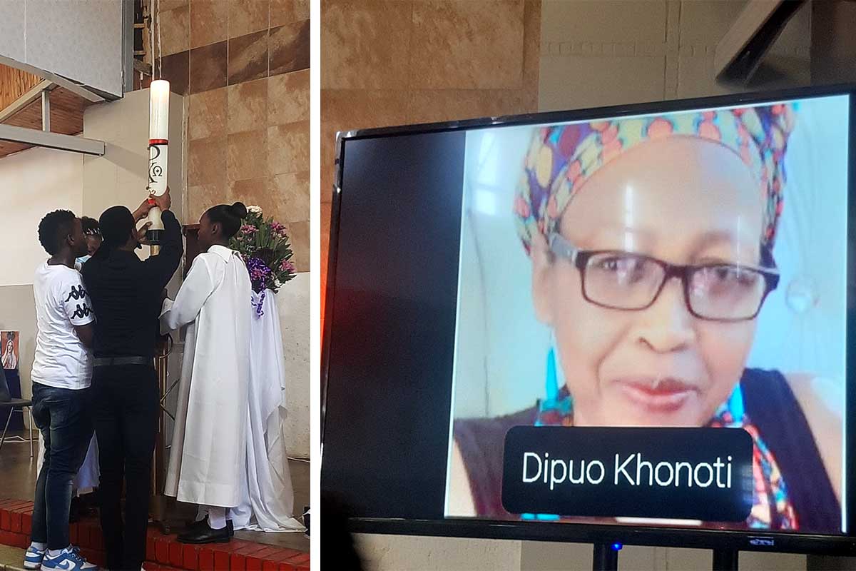 MC for the day Lucas Bokaba gave context to the session by relating the unique contributions that each departed person had made to the parish. As parishioner Ms Leketi laid her candles, he explained that she had been his primary school teacher at the Catholic Primary School in the adjoining Mmakau Village.