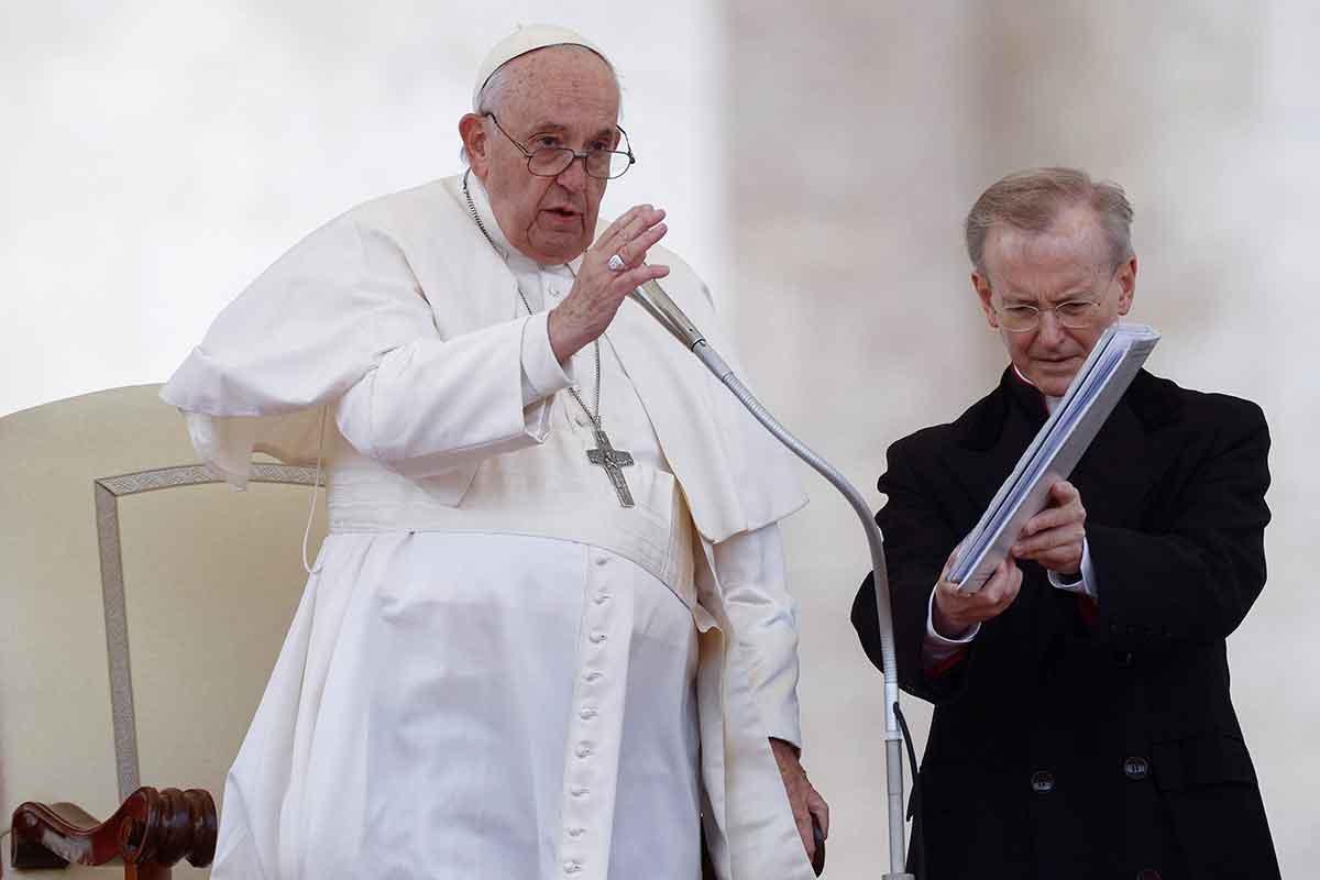Pope Francis gestures during his general audience in St. Peter’s Square at the Vatican Nov. 9, 2022. (CNS photo/Guglielmo Mangiapane, Reuters)