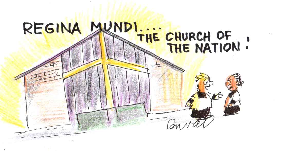 The history of Regina Mundi predates the majestic church building that opened its doors in 1964. In the late 1940s, an Irish-born Catholic farmer, Robert McDonald, made a space available on his farm, in the shade of a now-famous tree, for the celebration of Mass. Soon a growing number of Catholics converged under the tree every Sunday for Mass, celebrated by Fr Anton Paulson OMI.