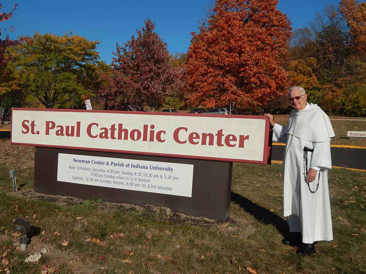 Now, having celebrated his 90th birthday on Dec. 10, Father Pokrzewinski is nearing his fourth year of ministering to college students at the St. Paul Catholic Center on the campus of Indiana University in Bloomington.