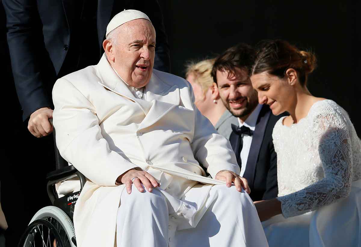 Pope Francis rides in a wheelchair as he meets people during his general audience in St. Peter’s Square at the Vatican Nov. 30, 2022. (CNS photo/Paul Haring)