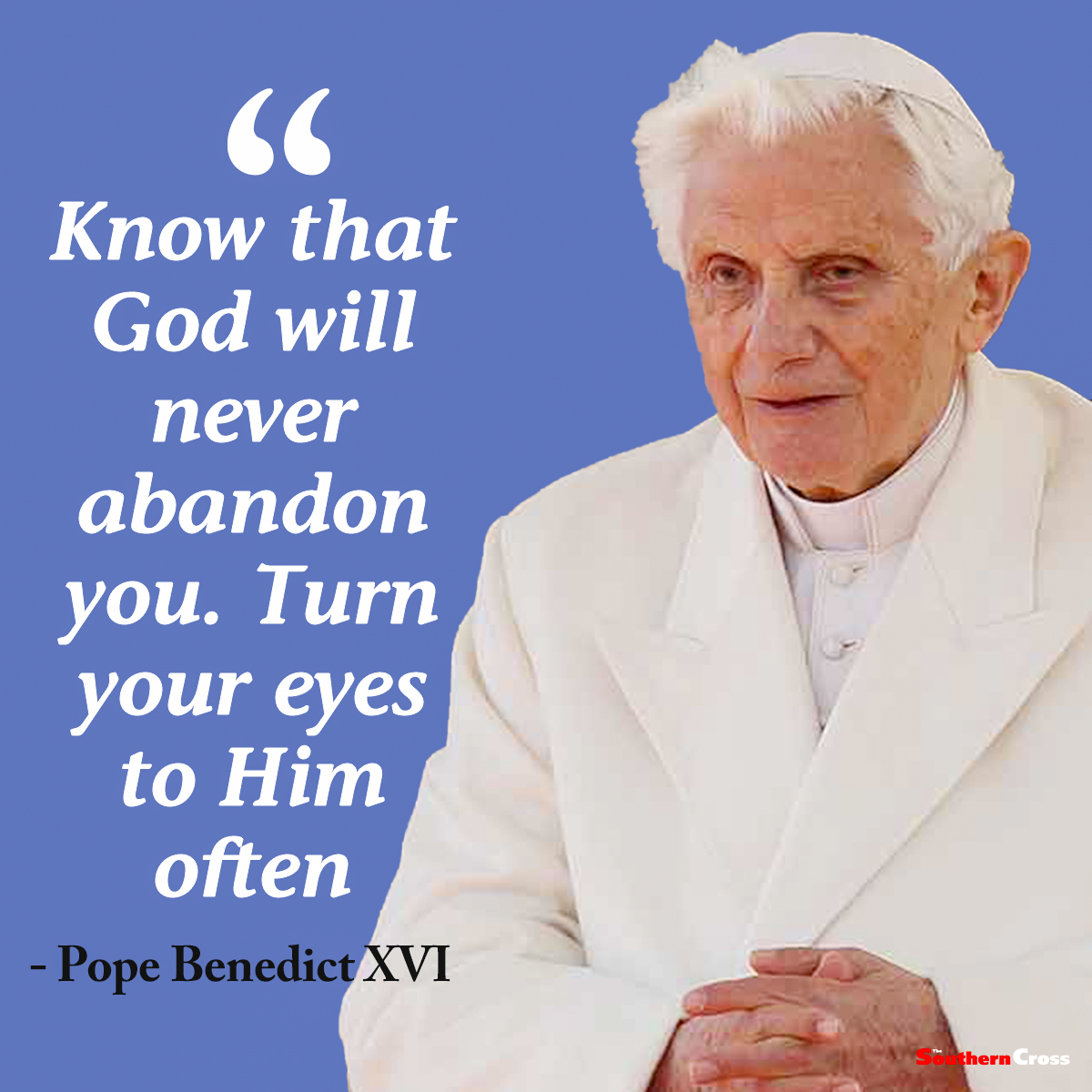 “Know that God will never abandon you. Turn your eyes to him often. He gave his life for you on the cross because he loves you. Contemplation of this great love brings a hope and joy to our hearts that nothing can destroy. Christians can never be sad, for they have met Christ, who gave his life for them.”