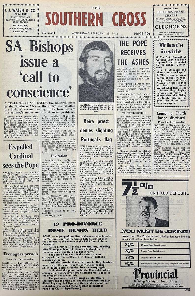 In a pastoral letter titled “A Call to Conscience”, the bishops of Southern Africa say that witness to social justice must start with Church institutions and with individuals examining their own behaviour. This demands attention to materialism, the evils of long-term migratory labour, the need to widen educational and economic opportunities, citizenship rights, and so on.