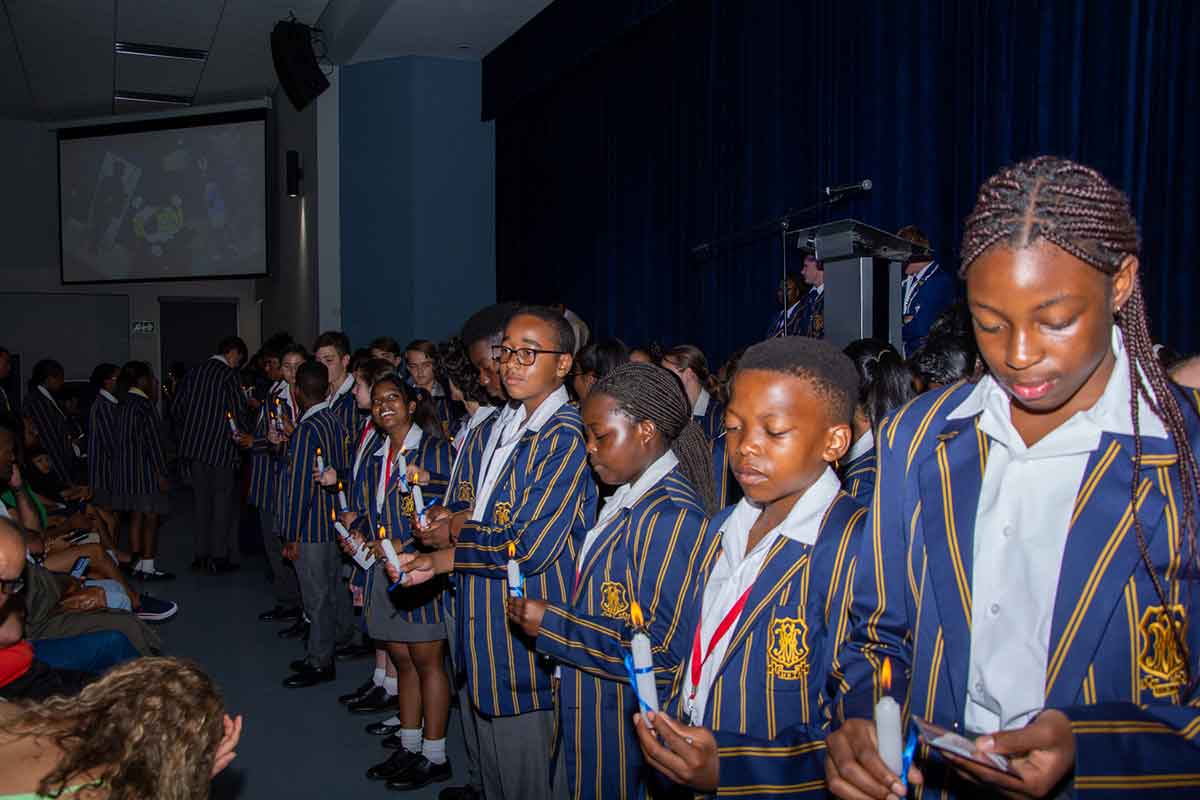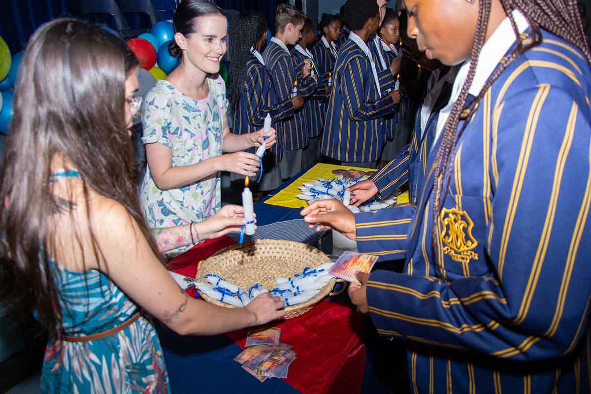 Ms Tiana De Oliveira (Grade 8 Register Teacher, Geography and Life Orientation Teacher) and Ms Caitlin Viljoen (Grade 8 Grade Head, Life Orientation and Geography Teacher) assisting Grade 8 students light the candles.