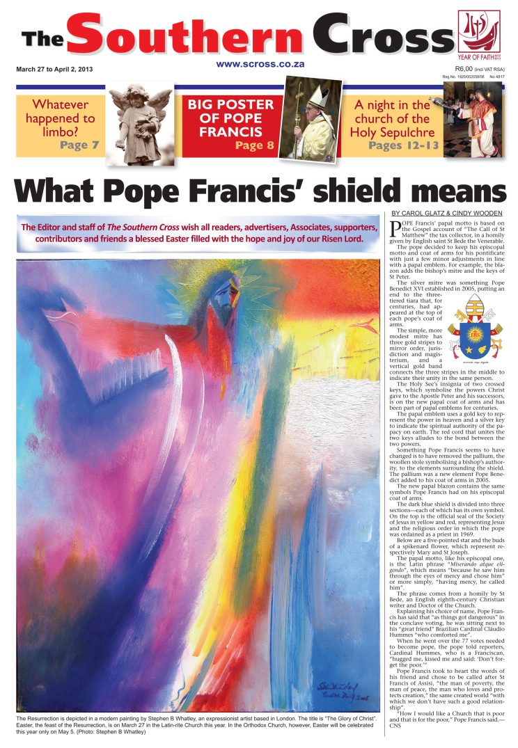 The newly-elected Pope Francis has decided to keep his episcopal motto and coat of arms for his pontificate, with just a few minor adjustments in line with a papal emblem. His motto is “Miserando atque eligendo”, which means, “Because he saw him through the eyes of mercy and chose him”.