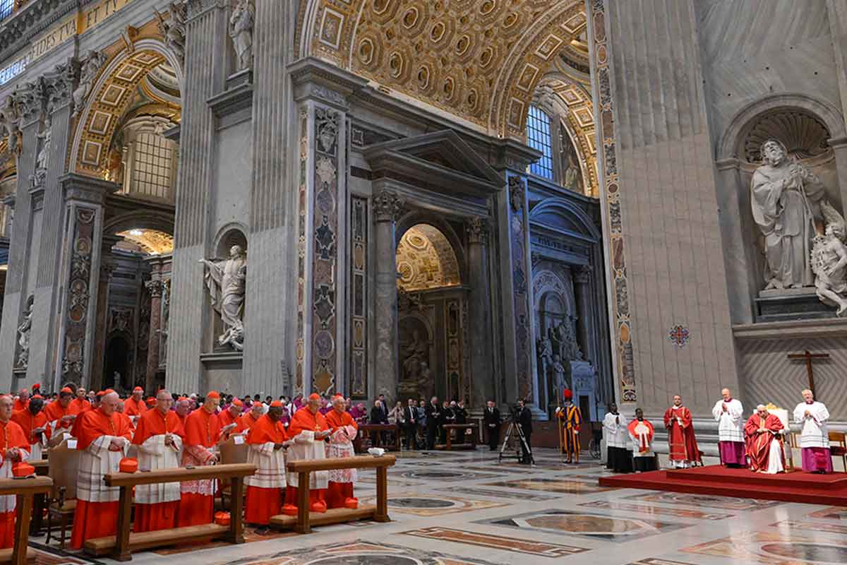 Pope Francis and cardinals gather for the Good Friday Liturgy of the Lord’s Passion in St. Peter’s Basilica at the Vatican in this file photo from April 7, 2023. As of June 2, 2023, two-thirds of the members of the College of Cardinals who are under the age of 80 and eligible to vote in a conclave to elect a new pope are cardinals created by Pope Francis. (CNS photo/Vatican Media)