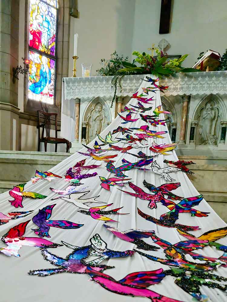 The Chapel was adorned with a flock of brightly coloured birds, crafted by the girls in their Religious Education lessons. The birds symbolise their readiness to spread their wings and leave the nurturing embrace of Maris Stella – no longer nestlings, but courageous eagles ready to soar and make a positive impact on the world.