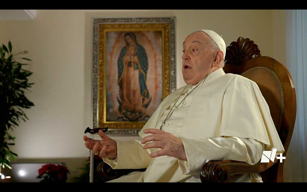 Pope Francis is seen speaking in this screen grab from an interview with Mexican news outlet N+ Dec. 12, 2023. (CNS photo/screen grab, N+)