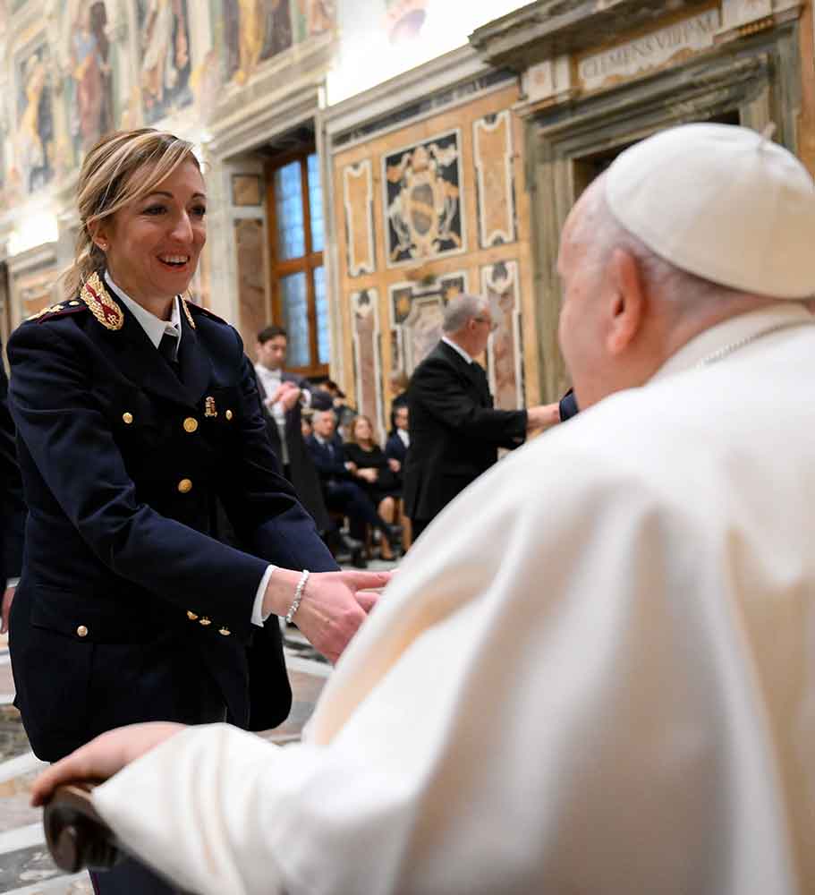 “It is a job that requires courage, tact, steady nerves, attention and understanding for the needs and emergencies of those who ask for your help and also of those who make your intervention necessary with problematic behaviour of various kinds,” the pope said Feb. 10 during a meeting with officials of the Inspectorate for Public Security at the Vatican, a special branch of the Italian state police force.