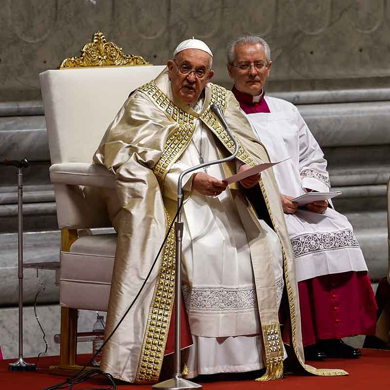 The service was preceded by a formal ceremony in the marble atrium in front of the basilica’s Holy Door during which the pope released the “bull of indiction” proclaiming the Holy Year 2025.