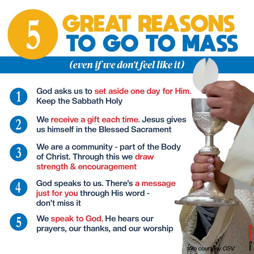 Cold weather, exhaustion and stress might prompt us to stay at home but here are 5 great reasons to go to Mass and receive God’s gifts with a thankful heart🙏