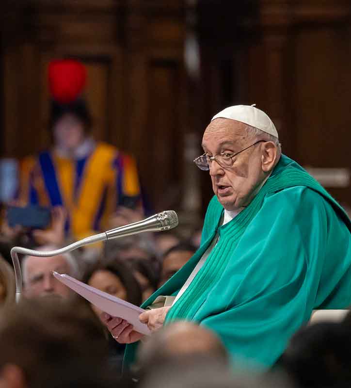Pope Francis gives his homily at Mass for the World Day of the Poor in St. Peter’s Basilica at the Vatican Nov. 17, 2024. (CNS photo/Pablo Esparza)