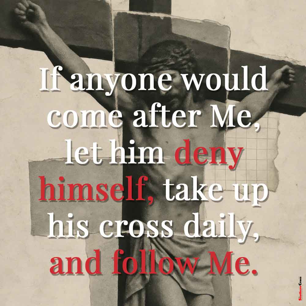 Jesus said: If anyone would come after Me, let him deny himself, take up his cross daily, and follow Me. Luke 9:23