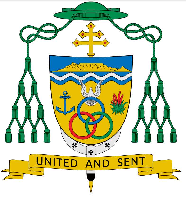 - At the centre are three interlocked rings, representing the diverse people of Cape Town united as one Body of Christ and reflecting the unity of the Holy Trinity.