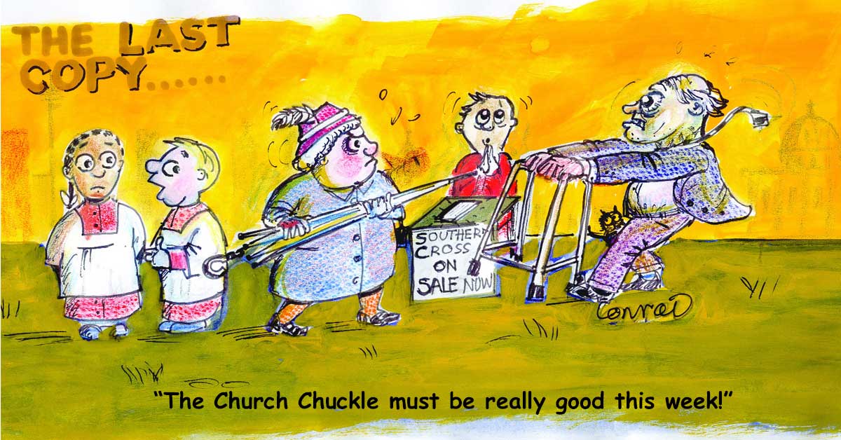 The Southern Cross has been publishing cartoons on its back page drawn by Conrad Burke since the early 90s. We have...
